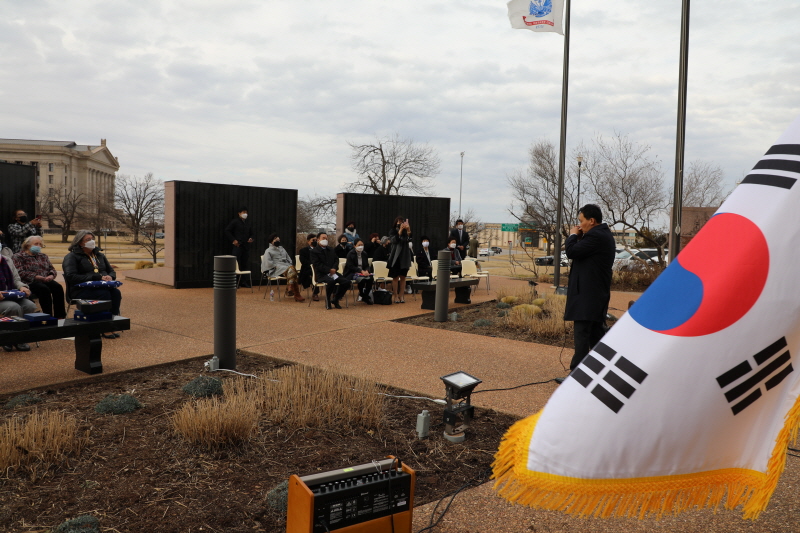 지난 2월 25일 오클라호마 시티 주청사 빌딩에 위치한 한국전 참전용사 기념공원에서 휴스턴 총영사와 관계자들이 모인 가운데 6. 25전쟁 참전용사 추모식과 메달 수여식이 있었습니다.